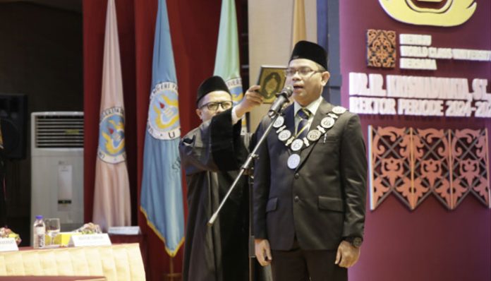 PADANGTIME.COM | Dr. Ir. Krismadinata, S.T, M.T resmi dilantik menjadi Rektor Universitas Negeri Padang (UNP) periode tahun 2024-2029 pada Rabu (5/6/2024). Dr. Krismadinata dilantik langsung oleh Ketua Majelis Wali Amanat (MWA) Prof. Dr. Z. Mawardi Effendi, M.Pd di Auditorium, Kampus Air Tawar UNP. Ia menggantikan Prof. Ganefri, Ph.D yang telah menjabat sebagai Rektor UNP selama dua periode dari tahun 2016.