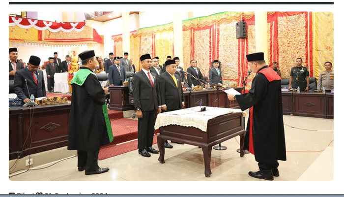 Hal ini disampaikan Penjabat Walikota Pariaman, Roberia pada Rapat Paripurna Pengukuhan dan Pengucapan Sumpah/Janji Ketua dan Wakil Ketua DPRD Kota Pariaman Masa Jabatan 2024-2029 di Ruang Utama DPRD Kota Pariaman, Sabtu (21/9/2024).