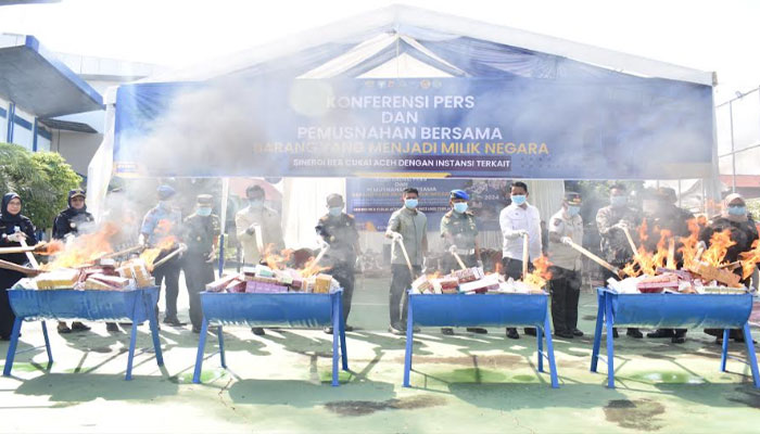 Banda Aceh (12/12/2024) – Sejalan dengan program Asta Cita Presiden Republik Indonesia, Kantor Wilayah Direktorat Jenderal Bea dan Cukai (Kanwil Bea Cukai) Aceh pada Kamis, 12 Desember 2024 menyelenggarakan kegiatan Pemusnahan Barang Hasil Penindakan dan Rilis Capaian Penindakan Kepabeanan dan Cukai selama Tahun 2024. Kegiatan dilaksanakan secara luring dan daring oleh seluruh Satuan Kerja (Satker) di lingkungan Kanwil Bea Cukai Aceh.