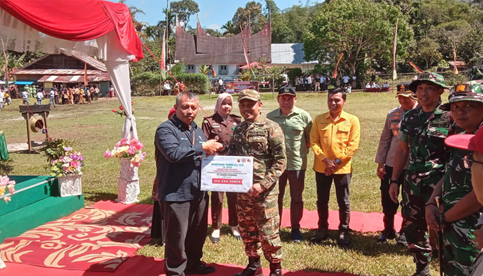 Penyerahan dilakukan usai upacara pembukaan TMMD/N di Lapangan Bola Kaki, Jorong Harau, Nagari Harau, Kecamatan Harau, Selasa (6/5/2025). Bantuan diserahkan oleh Staf TJSL Unit CSR PT Semen Padang, Nurwan, dan diterima langsung oleh Wakil Bupati Lima Puluh Kota, Ahlul Badrito Resha, disaksikan Dandim 0306/50 Kota Letkol Inf Ucok Namara, Kapolres 50 Kota AKBP Syaiful, serta tamu undangan lainnya.