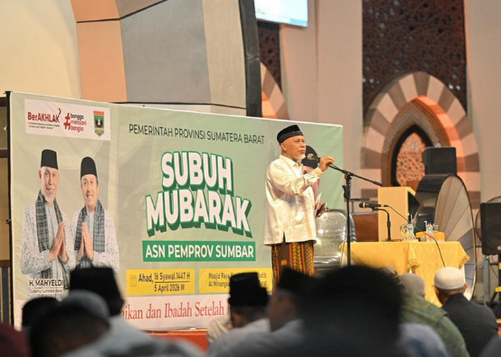Hal tersebut disampaikan Gubernur saat melaksanakan kegiatan Subuh Mubarokah bersama Aparatur Sipil Negara (ASN) Pemprov Sumbar di Masjid Raya Syekh Ahmad Khatib Al-Minangkabawi, Minggu (05/04/2026).