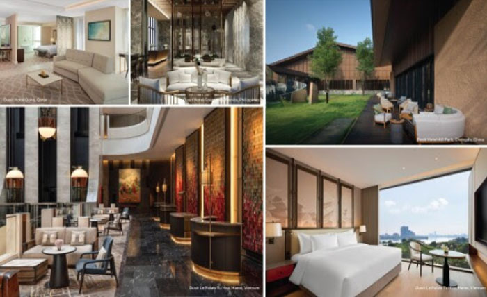 Bersama-sama, properti-properti ini menggambarkan fleksibilitas dan daya tarik merek menghidupkan keramahan dan keunggulan layanan Dusit dengan cara yang khas, dipandu oleh posisi kelas atas yang konsisten.