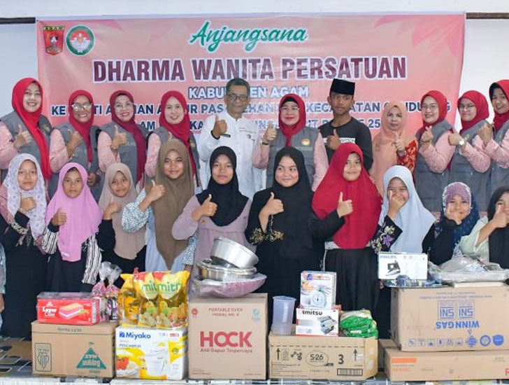 Dalam kegiatan tersebut, DWP Agam menyerahkan berbagai bantuan berupa peralatan masak seperti kompor, mixer, setrika, serta kebutuhan lainnya untuk anak-anak di panti asuhan.