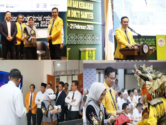 padangtime.com | Bekerjasama dengan EPSON, Sekretaris Direktorat Jenderal Pendidikan Tinggi Kementerian Pendidikan Tinggi, Sains, dan Teknologi, Prof. Dr. Ir. Aisyah Endah Palupi, M.Pd, yang didampingi Rektor UNP, Krismadinata, Ph.D selenggarakan Lomba Robot Industri Tingkat Nasional 2025, Senin (17/2/2025) di Auditorium UNP, Kampus Utama Air Tawar.