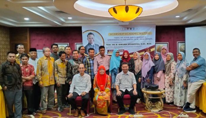 PADANGTIME.COM | Dalam rangka peningkatan kompetensi dosen dalam dunia kepenulisan artikel ilmiah bereputasi, Fakultas Adab dan Humaniora UIN Imam Bonjol Padang gelar workshop. Kegiatan ini merupakan bentuk komitmen para dosen dalam mengembangkan potensi menulis karya ilmiah dalam dunia penelitian dan publikasi internasional. Peserta yang ikut berjumlah 30 orang dengan sebaran dosen yang berasal dari berbagai program studi di Fakultas Adab dan Humaniora UIN Imam Bonjol Padang.