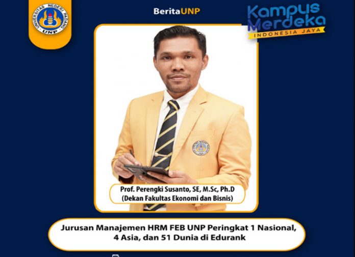 padangtime.com | Jurusan Manajemen Kajian Human Resource Management (HRM) di Fakultas Ekonomi dan Bisnis UNP berhasil menempati posisi pertama lembaga pemeringkatan Internasional Edurank dari 63 universitas di Indonesia serta menempati peringkat 4 di Asia dan 51 di Dunia.
