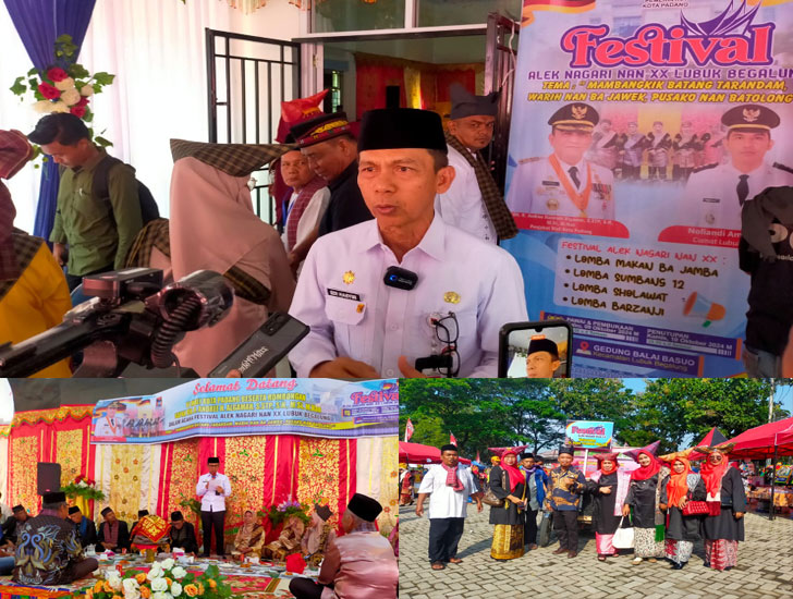 PADANGTIME.COM | Mengusung tema ‘Mambangkik Batang Tarandam, Warih Nan Bajawek, Pusako Nan Batolong’, festival Alek Nagari Nan XX Kecamatan Lubuk Begalung (Lubeg) resmi dibuka Asisten I Setda Kota Padang, Edi Hasymi di Gedung Balai Basuo, Lubeg, Rabu (9/10/2024).