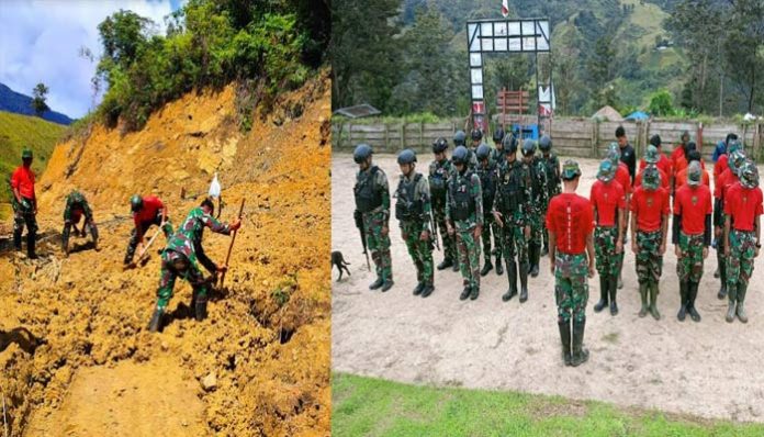 Jalan longsor yang terjadi di Desa Balime, Distrik Balingga, Kabupaten Lanny Jaya pada Selasa (12/03/2024) malam menjadi perhatian pihak Satgas Pamrahwan Yonif 721/Makkasau.