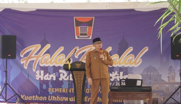 menggelar apel pagi dilanjutkan dengan halalbihalal bersama Wali Kota Padang Hendri Septa, Selasa (16/4/2023).