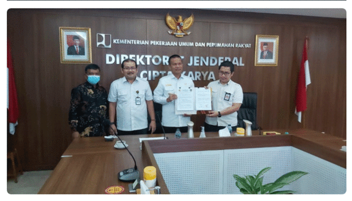 PadangTIME.com – Wali Kota Pariaman, Genius Umar menandatangani serah terima aset BMN (Barang Milik Negara) dari Kementerian Pekerjaan Umum dan Perumahan Rakyat (PUPR) RI, kepada Kota Pariaman di gedung Ditjen Cipta Karya, Kementerian PUPR, Kebayoran Baru, Jakarta Selatan, Kamis (8/12).