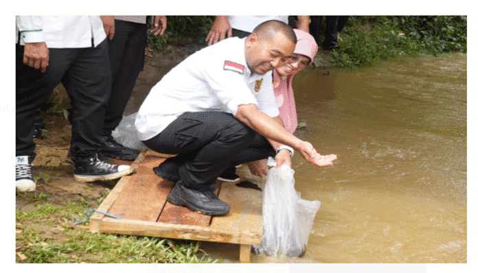 PadangTIME.com- Sebanyak 15.000 bibit ikan restocking air tawar dilepaskan secara simbolik oleh Wakil Gubernur Sumatera Barat, Audy Joinaldy, di Lubuk Larangan Sungai Batang Mimpi, Nagari Sikabau, Kecamatan Pulau Punjung, Kabupaten Dharmasraya, pada Rabu (7/12/2022). Adapun bibit ikan yang disebar adalah bibit ikan baung, nilem, dan ikan kering.