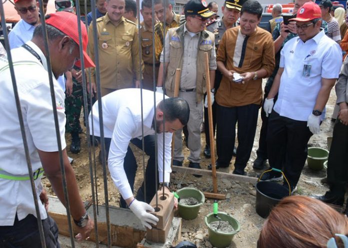 Peletakan batu pertama rumah contoh huntap mandiri itu dilakukan Sekretaris Utama BNPB Rustian bersama Wali Kota Padang Fadly Amran dan Direktur Operasi PT Semen Padang Andria Delfa, serta disaksikan jajaran pejabat daerah.