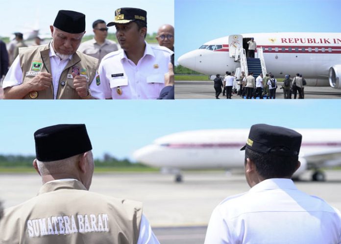 padangtime.com – Gubernur Sumatera Barat (Sumbar), Mahyeldi Ansharullah bersama Wakil Gubernur Sumbar, Vasko Ruseimy melepas kepulangan Presiden Republik Indonesia, Prabowo Subianto di Bandara Internasional Minangkabau (BIM), Kabupaten Padang Pariaman, Kamis (18/12/2025).