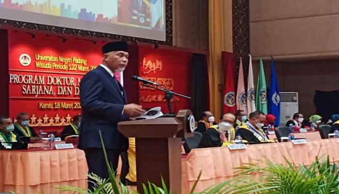 Atas nama Pemerintah Provinsi Sumatera Barat, Gubernur Mahyeldi Ansharullah, SP mengucapkan selamat dan sukses kepada UNP dan kepada 2.256 wisudawan dan wisudawati telah berhasil menyelesaikan pendidikan studi dari jenjang D III, D IV, S1, S2 sampai S3.