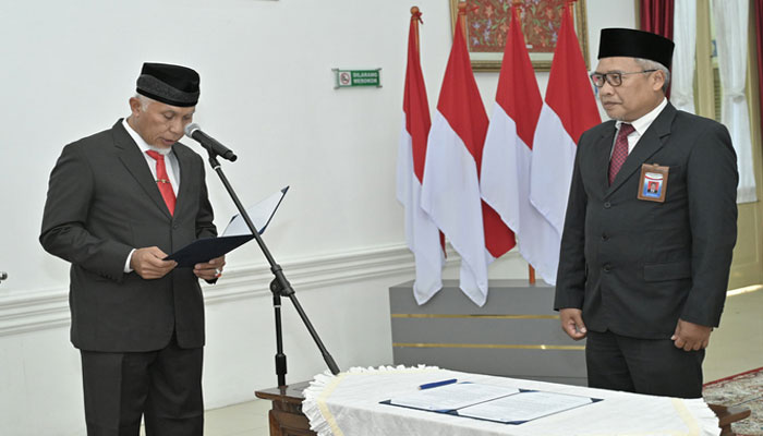 PADANG – padangtime.com | Gubernur Sumatera Barat, Mahyeldi Ansharullah, mengukuhkan Arif Ardiyanto sebagai Kepala Perwakilan Badan Pengawasan Keuangan dan Pembangunan (BPKP) Sumbar, dalam agenda pengukuhan yang berlangsung di Istana Gubernur Sumbar, Selasa (17/12/2024).