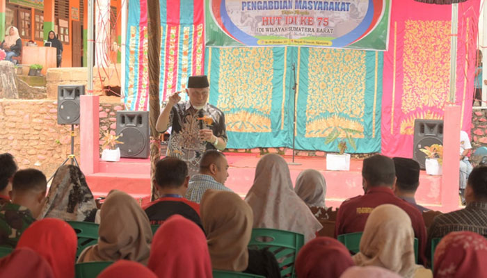 Sementara itu, Bupati Sijunjung, Benny Dwifa Yuswir, menyampaikan rasa syukur dan terima kasih atas perhatian besar IDI terhadap daerahnya. Ia juga menyinggung soal kekurangan tenaga dokter, terutama dokter spesialis, di Sijunjung.