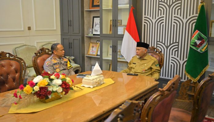 padangtime.com | Padang – Gubernur Sumatera Barat (Sumbar), Mahyeldi Ansharullah, menerima kunjungan silaturrahim Kapolda Sumbar, Irjen Pol Gatot Tri Suryanta beserta jajaran di Istana Gubernuran, Senin (13/01/2025). Kedua pihak membahas penguatan sinergi untuk mendukung keamanan, kenyamanan, serta pembangunan yang berkelanjutan di Sumbar.