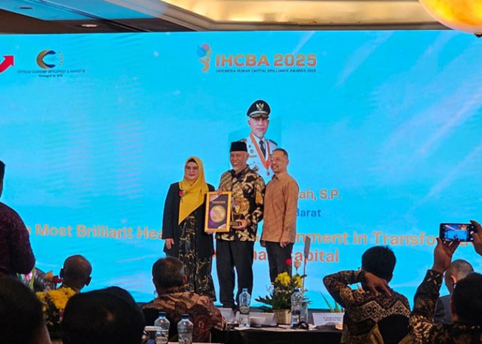 padangtime.com – Gubernur Sumatera Barat (Sumbar), Mahyeldi Ansharullah meraih penghargaan Indonesia Human Capital Brilliance Award (IHCBA) 2025 kategori “The Most Brilliant Head of Local Government in Transformation of BUMD Human Capital” dari BusinessUpdate.id.