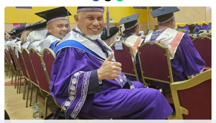 “Menuntut ilmu itu, tidak mengenal batas usia atau jabatan. Pendidikan adalah jalan untuk memperdalam pemahaman, memperkuat keikhlasan, dan menghadirkan solusi bagi masyarakat,” ujar Mahyeldi usai prosesi wisuda.
