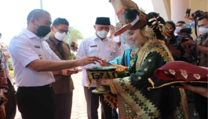 Hal ini disampaikan Menteri Pariwisata dan Ekonomi Kreatif (Menparekraf) RI, Sandiaga Salahudin Uno yang didampingi Gubernur Sumatera Barat Mahyeldi dan Wagub Audy Joinaldy dalam acara penyambutan di Bandara Internasional Minangkabau, Rabu (21/4/2021).