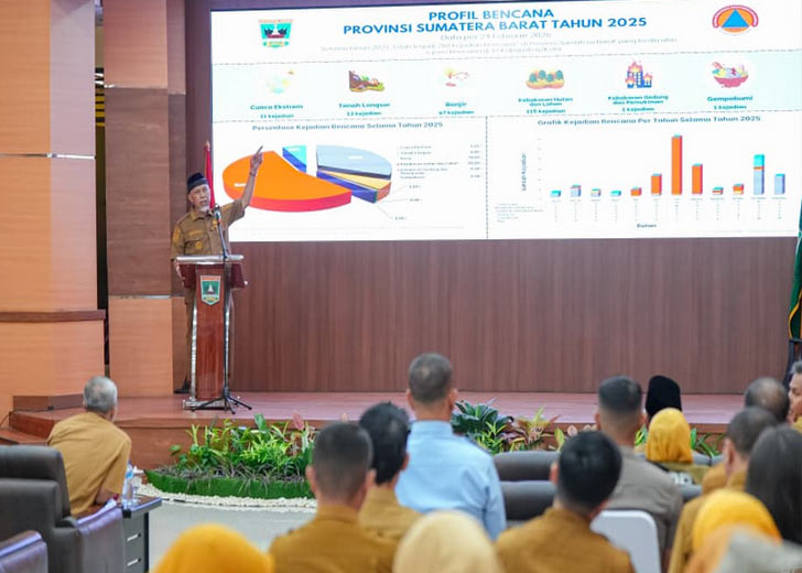 Mahyeldi juga menyoroti bencana besar 2025 akibat curah hujan ekstrem dan siklon tropis. Di Sumbar tercatat sekitar 264 korban meninggal, puluhan hilang, dan ribuan rumah rusak. Secara regional, lebih dari 1.200 korban jiwa dan jutaan warga terdampak.
