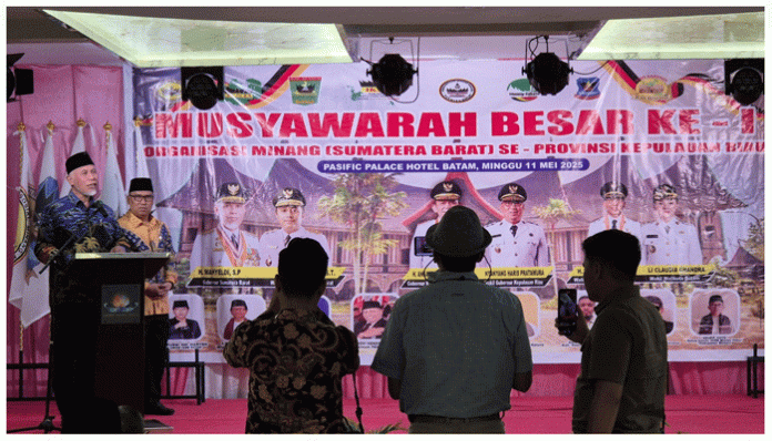 Hal itu disampaikannya saat membuka Musyawarah Besar (Mubes) Ke-1 Organisasi Minang Sumatera Barat se-Provinsi Kepulauan Riau yang digelar di Pacific Palace Hotel, Batam. Minggu (11/5/2025).