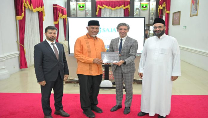 “Sumbar sangat berpotensi dalam bidang pariwisata dengan pertumbuhan ekonomi mikro dan makro Sumbar yang sangat mendukung investasi. Tahun 2023 lalu, kami menargetkan 8,2 juta kunjungan wisatawan, dan Alhamdulillah terealisasi 11,2 juta,” ucap Gubernur Mahyeldi kepada Abdullah Alamri, Mustafa Aydemir, dan Omer Medeni dari SAJA Group.