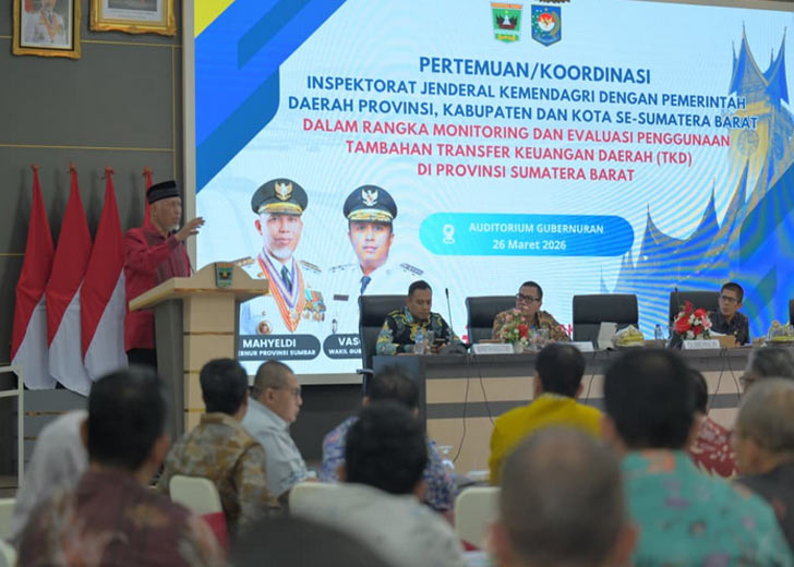 Penegasan tersebut disampaikannya saat membuka Rapat Koordinasi (Rakor) Monitoring dan Evaluasi Penggunaan Anggaran TKD antara Tim Inspektorat Jenderal Kementerian Dalam Negeri dengan pemerintah provinsi serta kabupaten/kota se-Sumatera Barat, di Auditorium Gubernuran, Kamis (26/3/2026).