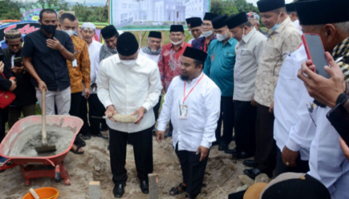 PadangTIME – Gubernur Sumatera Barat, Mahyeldi Ansharullah, didampingi Bupati Agam, Dr. H. Andri Warman, MM, letakkan batu pertama pembangunan gedung pusat dakwah dan pelayanan umat, di Jorong Surau Baru, Nagari Pakan Sinayan, Kecamatan Banuhampu, Minggu (9/1).