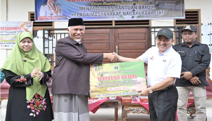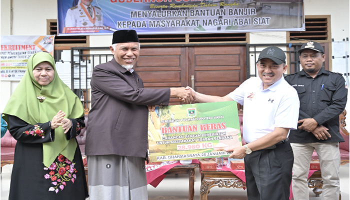 “Hari ini, Pemprov Sumbar hadir menyalurkan bantuan beras cadangan pangan sebanyak 28.980 kg atau hampir 30 ton untuk warga kita yang terkena musibah banjir di Dharmasraya,” kata Gubernur Mahyeldi di Kantor Wali Nagari Abai Siat, Kecamatan Kota Besar, Dharmasraya, Minggu (28/1/2023).