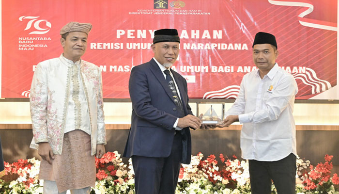 PADANGTIME.COM | Sebagai wujud syukur atas peringatan Kemerdekaan RI ke-79 pada tahun ini sekaligus sebagai bentuk apresiasi pemerintah terhadap Warga Binaan Pemasyarakatan (WBP), Gubernur Sumatera Barat (Sumbar), Mahyeldi Ansharullah menyerahkan keputusan pemberian remisi bagi 4.185 WBP di bawah lingkungan Kanwil Kemenkumham Sumbar, Sabtu (17/08/2024).