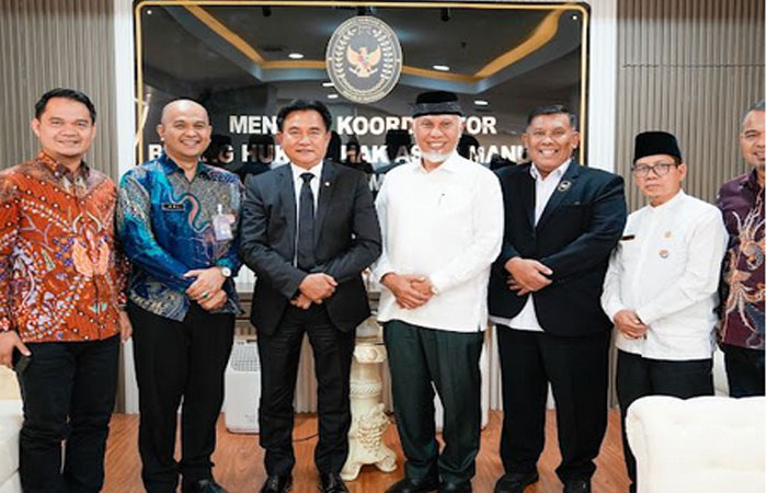 padangtime.com – Gubernur Sumatera Barat (Sumbar), Mahyeldi Ansharullah melakukan kunjungan resmi ke kantor Menteri Koordinator Bidang Hukum, Hak Asasi Manusia, Imigrasi, dan Pemasyarakatan, Prof. Dr. Yusril Ihza Mahendra, di Jakarta, Jumat (13/6) lalu.