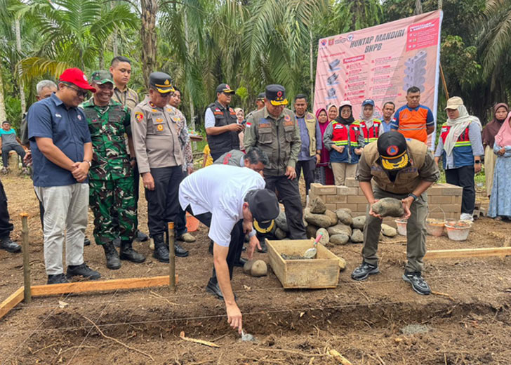 Pembangunan huntap mandiri di Kabupaten Limapuluh Kota dimulai di Jorong Lubuk Aur, Nagari Koto Tinggi, Kecamatan Gunuang Omeh, Rabu (15/4/2026). Kegiatan tersebut ditandai dengan peletakan batu pertama oleh Sekretaris Utama BNPB, Rustian, bersama Bupati Limapuluh Kota, Safni Sikumbang.