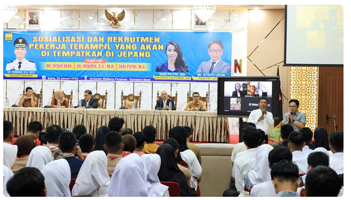 Padang TIME.com – Pemerintah Kota Pariaman bekerjasama dengan Yayasan Pendidikan Padang Nihon Go Gakuin (PNGG) gelar Sosialisasi dan Rekrutmen Pekerja Terampil yang akan ditempatkan di Jepang dilaksanakan di Aula Balaikota Pariaman, Sabtu (25/1/2025). Acara ini menghadirkan narasumber, Pj. Walikota Pariaman, Roberia, Mr. Ueda Hatsuo dari Jepang dan Sari Puri M.A.