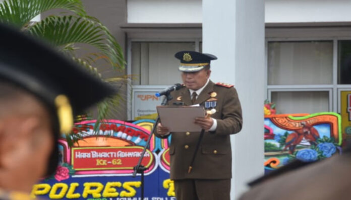 PadangTIME.com – Jajaran kantor Kejaksaan Negeri (Kejari) Agam gelar upacara peringatan Hari Bhakti Adhyaksa (HBA) ke-62, Jumat (22/7).