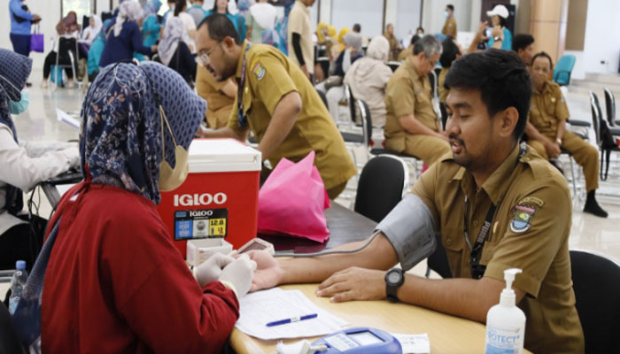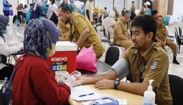 Tangerang – Pemerintah Kabupaten Tangerang melalui Dinas Kesehatan menggelar pemeriksaan kesehatan gratis, donor darah, serta tes kebugaran, dalam rangka memperingati Hari Kesehatan Nasional. Kegiatan dimulai dengan apel pagi di lingkungan Dinas Kesehatan Kabupaten Tangerang pada Selasa, 12 November 2024.