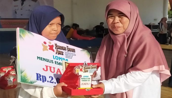 Penghargaan berupa piala dan tabungan diserahkan Kepala DP3AP2KB Sumbar, dr Herlin Sridiani di Lapangan Cindua Mato, Batusangkar. Mantan Direktur RSUD dr Rasidin Padang itu menyebut, lomba menulis telah mengasah literasi menulis siswa. Kegiatan lomba ini harus terus digelorakan agar anak lebih kreatif dan mampu menuangkan ide-idenya ke dalam bentuk tulisan.(DA)