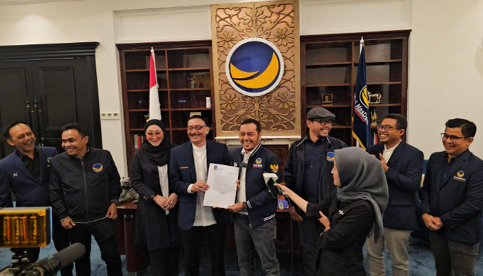 Surat Rekomendasi yang ditandatangani langsung oleh Ketua Umum Partai Nasdem Surya Paloh diserahkan Willy Aditya selaku Sekretaris Bapilu DPP Partai Nasdem, di Menara Nasdem Jakarta pada Minggu (2/6).