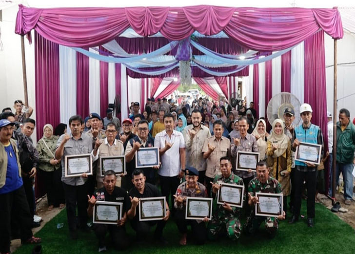 Untuk itulah saat peresmian Huntara mandiri itu diserahkan sebanyak 16 sertifikat penghargaan dari pemerintah provinsi untuk pihak yang telah ikut berjerih payah dalam pembangunan Huntara tersebut.