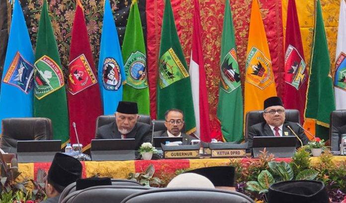 Sidang berlangsung di Ruang Sidang Utama DPRD Sumbar, dipimpin oleh Ketua DPRD Muhidi, dan dihadiri jajaran Forkopimda, unsur pimpinan serta anggota DPRD, kepala OPD, dan pimpinan instansi vertikal di Sumbar.