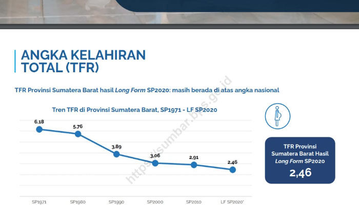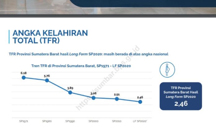 Dengan demikian perempuan kini rata-rata hanya melahirkan dua sampai tiga anak selama masa reproduksi,” ujar kepala BPS Sumatera Barat, Herum Fajarwati. Ia mengatakan bahwa penurunan ini justru menjadi tren yang positif karena adanya pengaruh kemajuan zaman, usia pernikahan, dan tingkat pendidikan yang kian membaik yang nantinya akan berpeluang terhadap besarnya kesempatan bonus demografi.