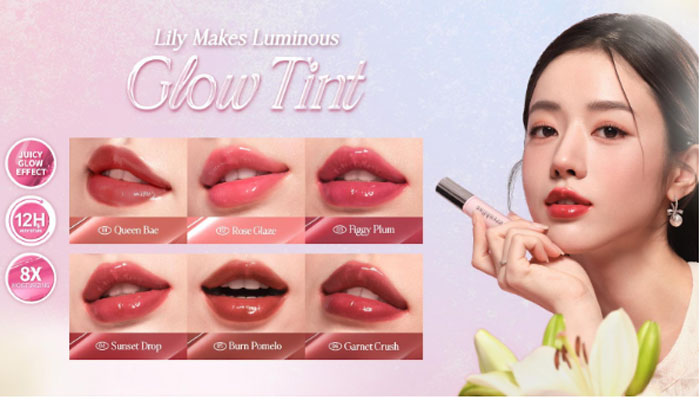 Pilih Lily Makes Luminous Glow Tint dalam warna Rose Glaze untuk tampilan yang feminin atau Figgy Plum untuk tampilan bold.