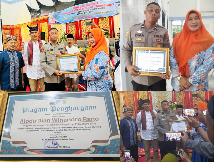 Padang, 11 Juni 2024 – Aipda Dian Wihendro Ratno, anggota Polsek Lubeg Polresta Padang dan Kasi Humas Polsek Lubeg, menerima penghargaan dari Badan Kependudukan dan Keluarga Berencana Nasional (BKKBN) Provinsi Sumatera Barat.