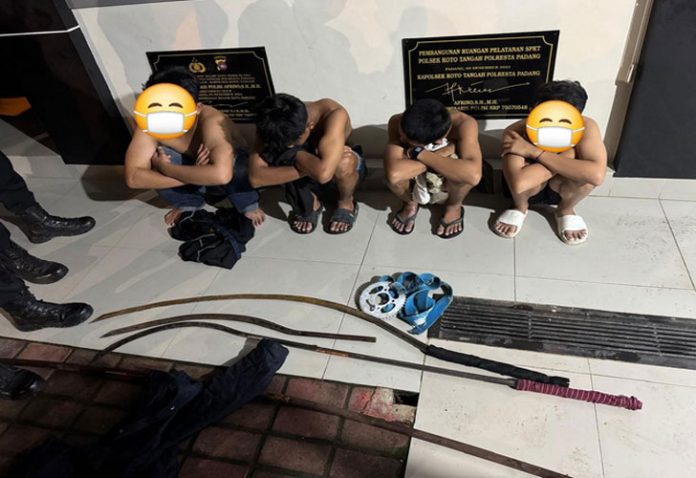Ia menambahkan, dari hasil patroli yang dilakukan dinihari tadi, tim menemukan empat orang yang diduga akan melakukan tawuran dengan inisial FF (15) warga Ketaping, RF (16) warga Kasang, RW (16), warga Mega Permai, Koto Tangah dan AA (15) warga Batipuh Panjang.