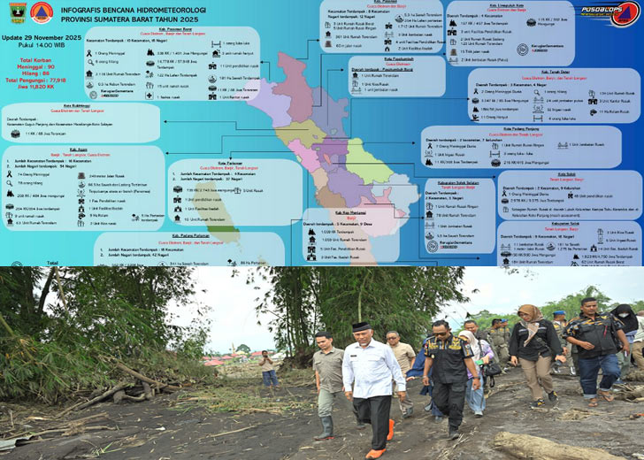 padangtime.com – Pemerintah Provinsi Sumatera Barat (Pemprov Sumbar) melalui Pusdalops BPBD kembali merilis pembaruan data korban bencana hidrometeorologi yang melanda sejumlah daerah sejak 21 November 2025. Hingga Sabtu (29/11) pukul 14.00 WIB, tercatat 90 orang meninggal dunia dan 86 orang masih dinyatakan hilang.