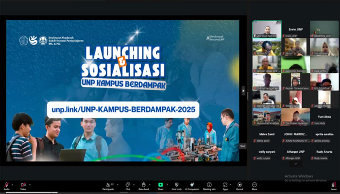 Kepala Sub Direktorat Inovasi Pembelajaran,PJJ dan RPL, Direktorat Akademik UNP, Dr. Nofrion, M.Pd dalam paparanya menyampaikan bahwa empat kegiatan dalam Program UNP Kampus Berdampak adalah 1) UNP Membangun (Magang Mandiri), 2) UNP Meneliti (Riset Mandiri – Riset Payung), 3) UNP Mengabdi (Proyek Sosial-Kemanusiaan) dan 4) UNP Mengajar (Riset Kependidikan di Satuan Pendidikan). Kegiatan-kegiatan tersebut terbuka untuk mahasiswa aktif UNP yang telah berada pada semester 7 dan seterusnya serta IPK minimal saat mendaftar adalah 2,90. Pada semester Juli – Desember 2025, UNP membuka peluang untuk 400 mahasiswa.