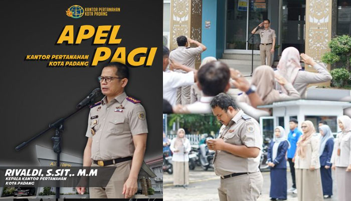 Padang, 9 Desember 2024 – Kantor Pertanahan Kota Padang kembali melaksanakan kegiatan rutin Apel Pagi pada Senin (9/12/2024). Apel kali ini dipimpin langsung oleh Kepala Kantor Pertanahan Kota Padang, Rivaldi, S.SiT., M.M..