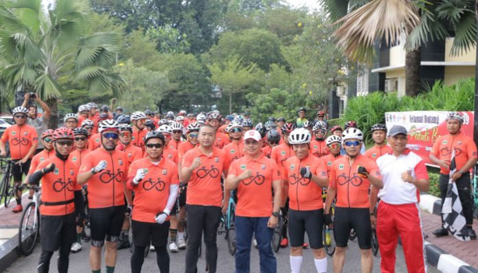 PADANGTIME.COM  – Kapolda Sumatera Barat Irjen Pol Suharyono, S.Ik. SH bersama Wagub Sumbar Audy Joinaldi melepas ratusan pesepeda di Mapolda Sumbar, Sabtu (25/5) pagi.