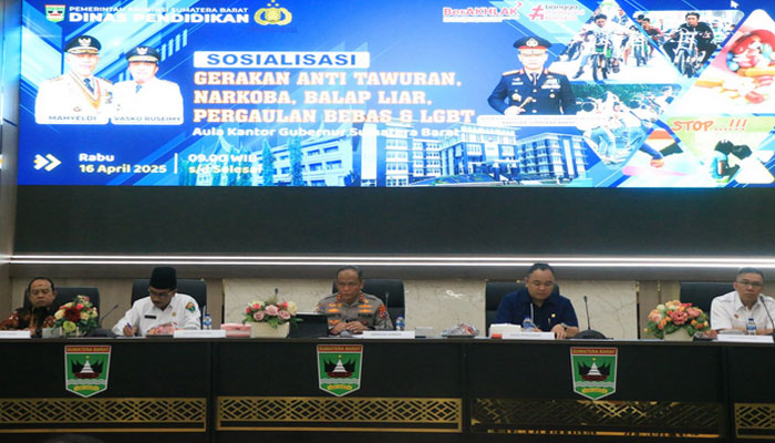 Hal ini dibuktikan dengan kehadiran langsung Kapolda Sumbar Irjen Polda Gatot Tri Suryanta dalam acara Sosialisasi Anti Tawuran, Narkoba, Balap Liar, Pergaulan Bebas dan LGBT yang digelar di Aula Kantor Gubernur Sumbar, pada Rabu (16/4/2025).