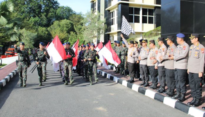 PADANGTIME.COM | Polda Sumbar upacara pemberangkatan Pleton Pengambilan Air Suci di mata air Pincuran Tujuh Bukit Barisan Lubuk Minturun, Senin (10/6).
